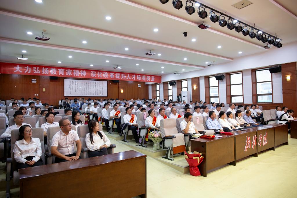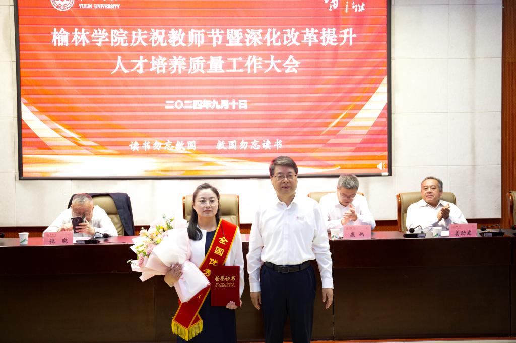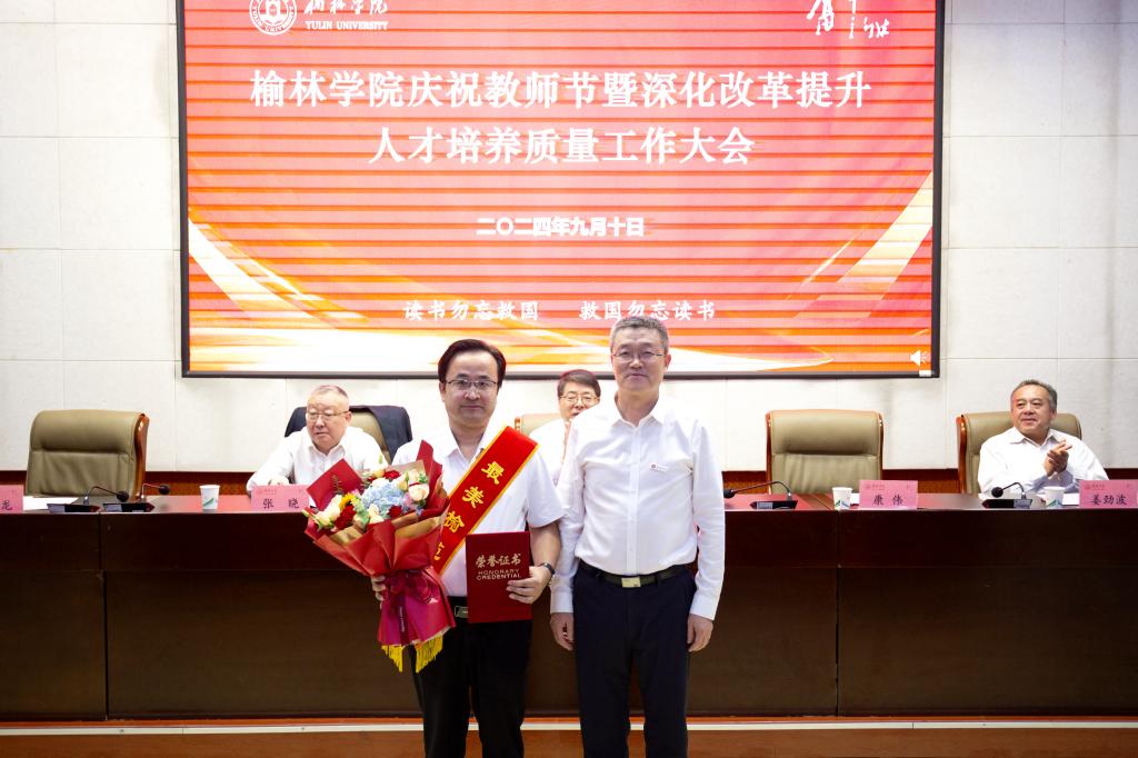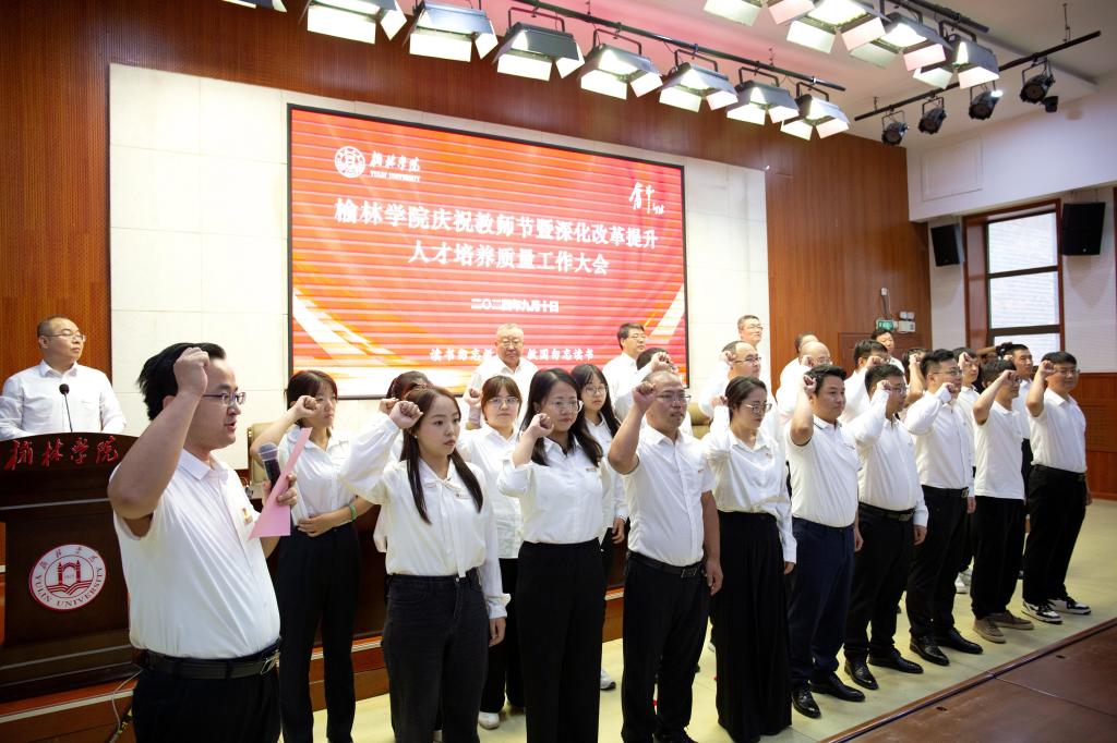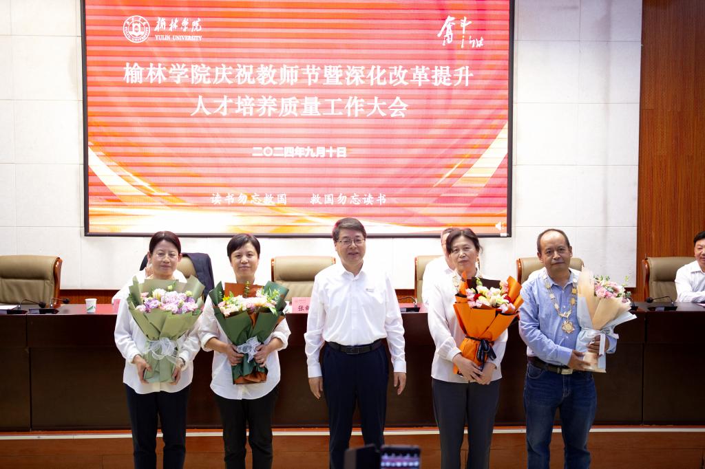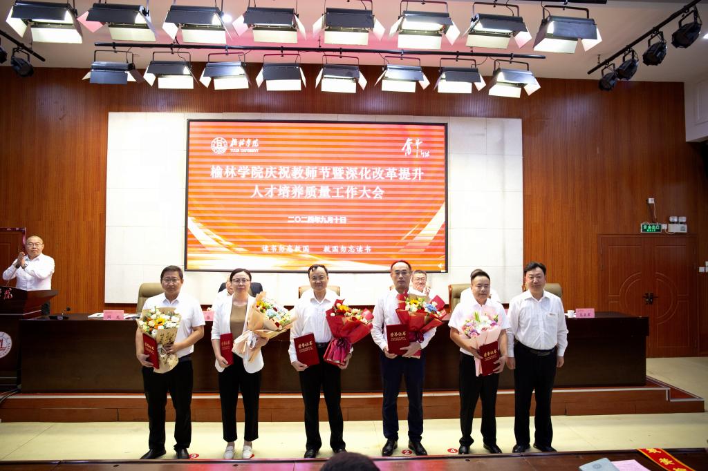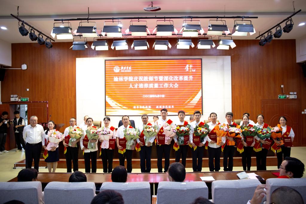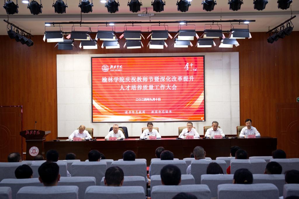 为深入学习贯彻党的二十届三中全会和全国教育大会精神、习近平总书记关于教育的重要论述和中共中央、国务院关于弘扬教育家精神加强新时代高素质专业化教师队伍建设的意见,进一步深化改革,全面提高人才培养质量,9月10日下午,以“大力弘扬教育家精神、深化改革提升人才培养质量”为主题的榆林学院庆祝教师节暨深化改革提升人才培养质量工作大会在逸夫楼一楼报告厅隆重举行。全体校领导、副处级及以上干部、三级教授、从教30年教师、入选2024年全国优秀教师、2024年“最美榆苑人”“四有好老师”“榆溪学者”、2024年国家自然科学基金项目获批者、陕西省基础教育教学成果奖获得者、教师代表、新进博士、学生代表近200人参加。