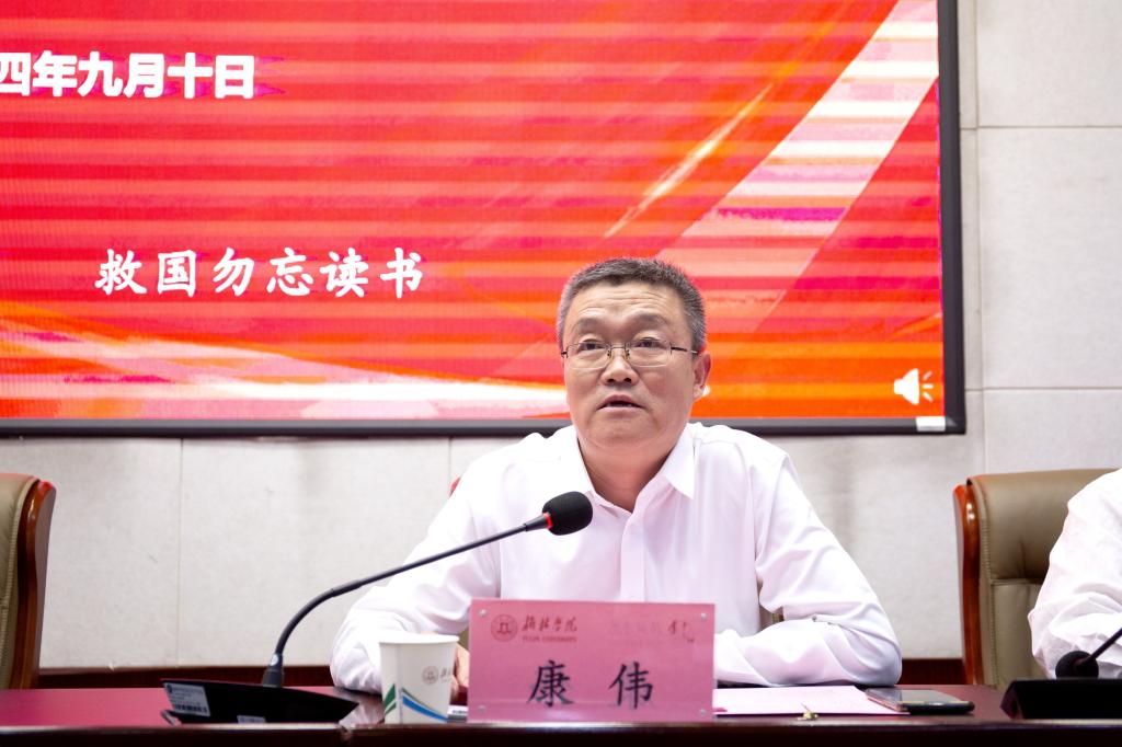最后,康伟向全体教师送上节日的祝福,希望大家大力弘扬教育家精神,以受到表彰的优秀教师、团队为榜样,在党建思政、教学科研、管理服务岗位上敬业奉献,为培养德智体美劳全面发展的社会主义建设者和接班人,为学校高质量发展贡献智慧和力量。