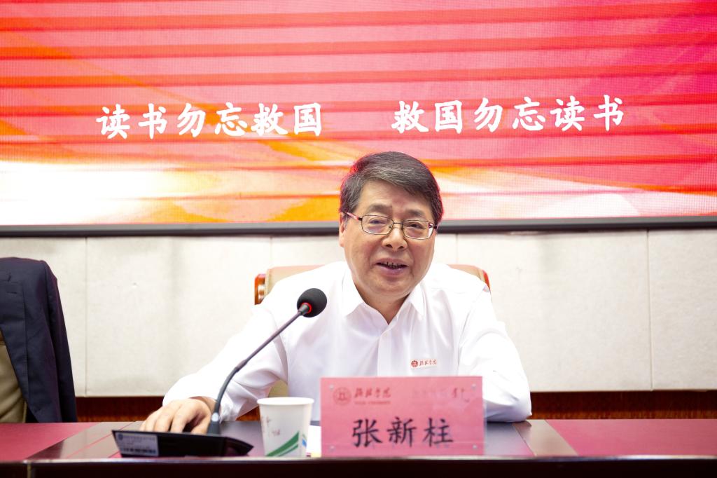 张新柱代表学校,在全国教育大会召开与第40个教师节来临之际向奋战在学校各条战线上的全体教职员工致以节日的问候和美好的祝福。他强调,学校隆重表彰一年来在教育教学、科学研究领域涌现出来的先进个人和从教30年的资深教师,是对奋战在学校教育教学一线教师的高度肯定,是学校尊师重教的充分体现。他号召大家要向榜样致敬、向优秀看齐、向先进学习,争当先进,大力弘扬教育家精神,深化改革提升人才培养质量,赓续红色血脉,发扬“奋斗”精神,用热爱教学、研究教学、享受教学的挚爱态度潜心教育、教书育人。同时,他也希望受表彰的老师珍惜荣誉、继续奋进,为学校内涵式高质量发展再立新功。